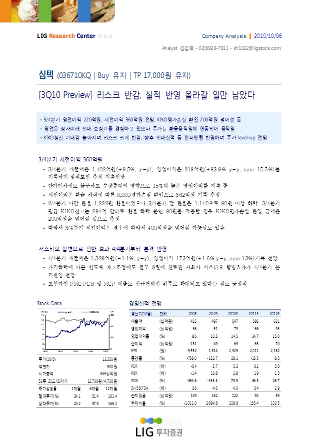 [3Q10 Preview] 리스크 반감, 실적 반영 올라갈 일만 남았다 - LIG투자증권
