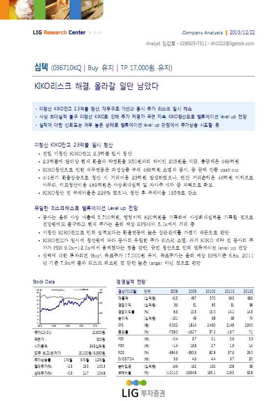 KIKO리스크 해결, 올라갈 일만 남았다 - LIG투자증권