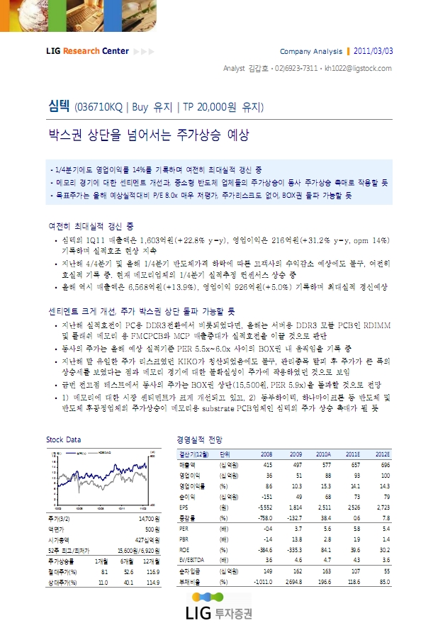 박스권 상단을 넘어서는 주가상승 예상 - LIG투자증권