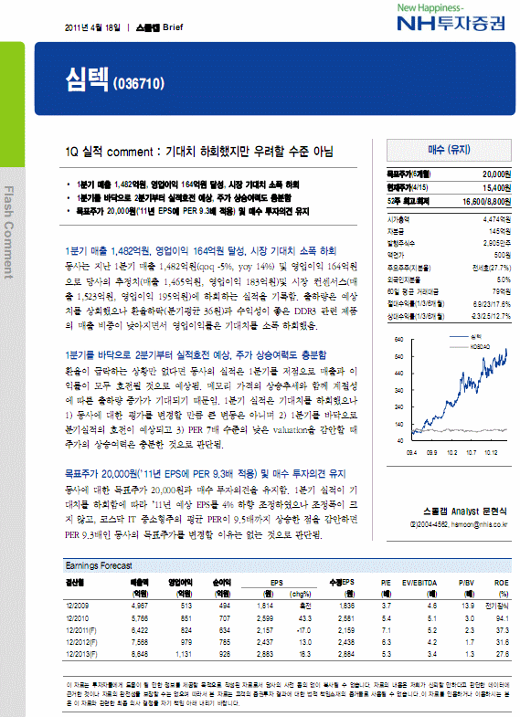 1Q 실적 comment : 기대치 하회했지만 우려할 수준 아님 - NH투자증권