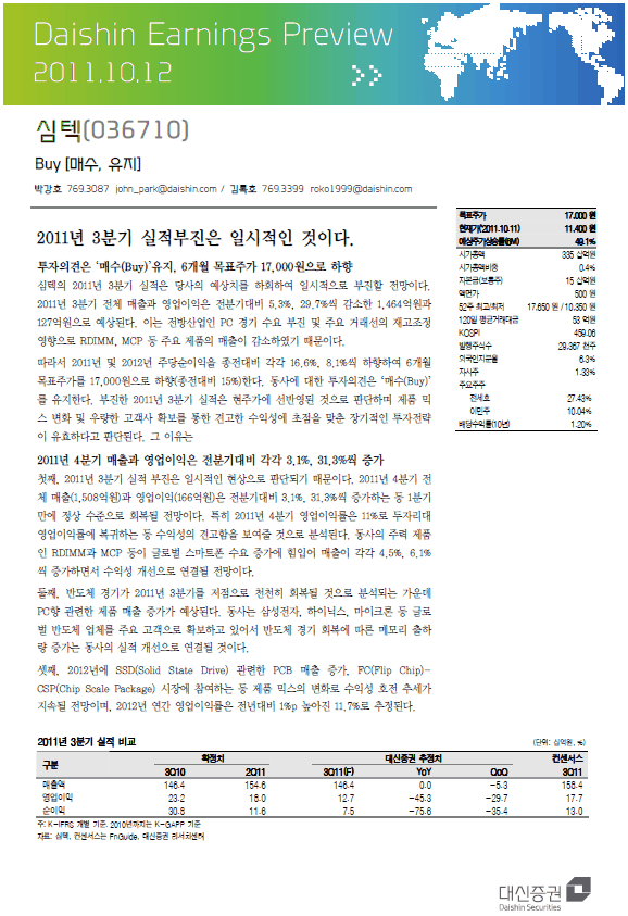 2011년 3분기 실적부진은 일시적인 것이다. - 대신증권