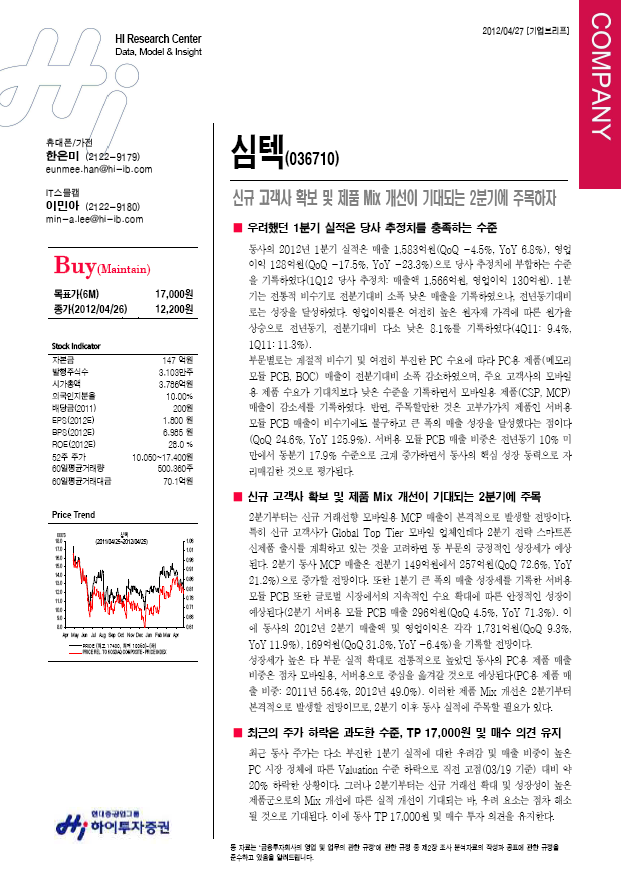 신규 고객사 확보 및 제품 Mix 개선이 기대되는 2분기에 주목하자 - 하이투자증권