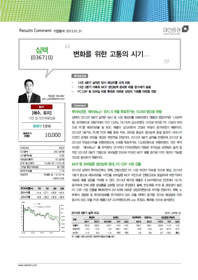 (주)심텍홀딩스는 세상을 풍요롭게 만드는데 기여하겠습니다.