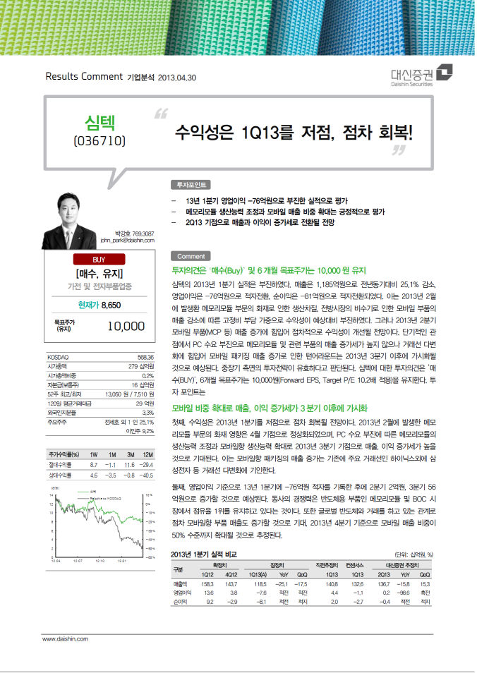 수익성은 1Q13를 저점, 점차 회복! - 대신증권