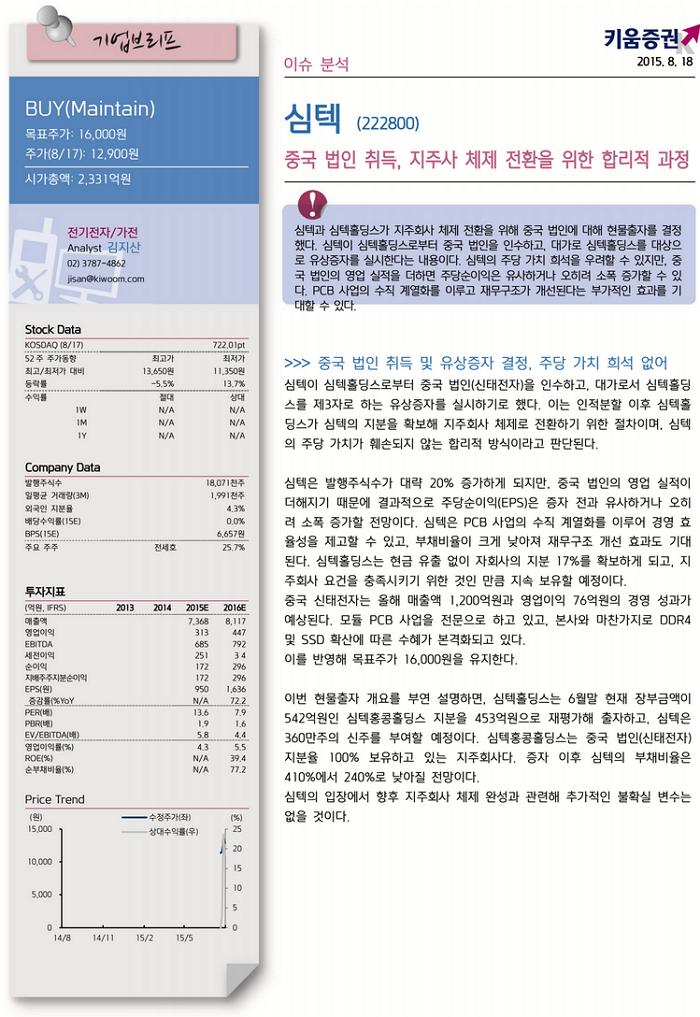 중국 법인 취득, 지주사 체제 전환을 위한 합리적 과정 - 키움증권