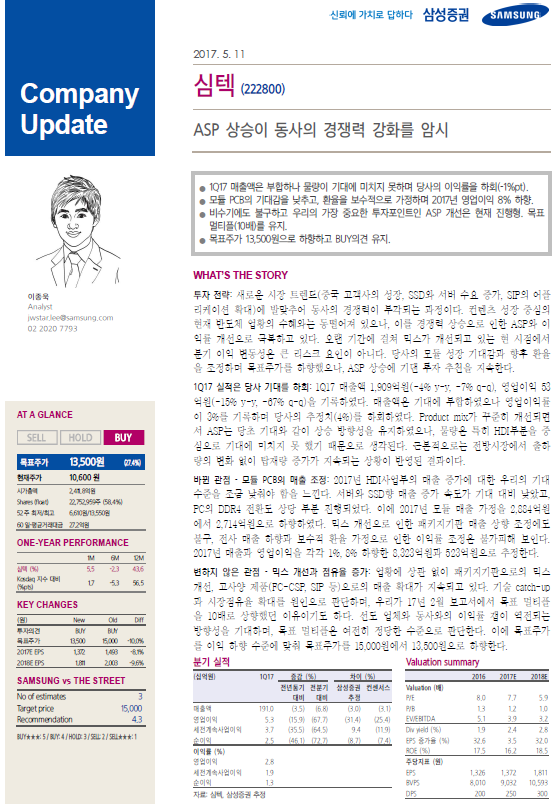 ASP 상승이 동사의 경쟁력 강화를 암시 - 삼성증권